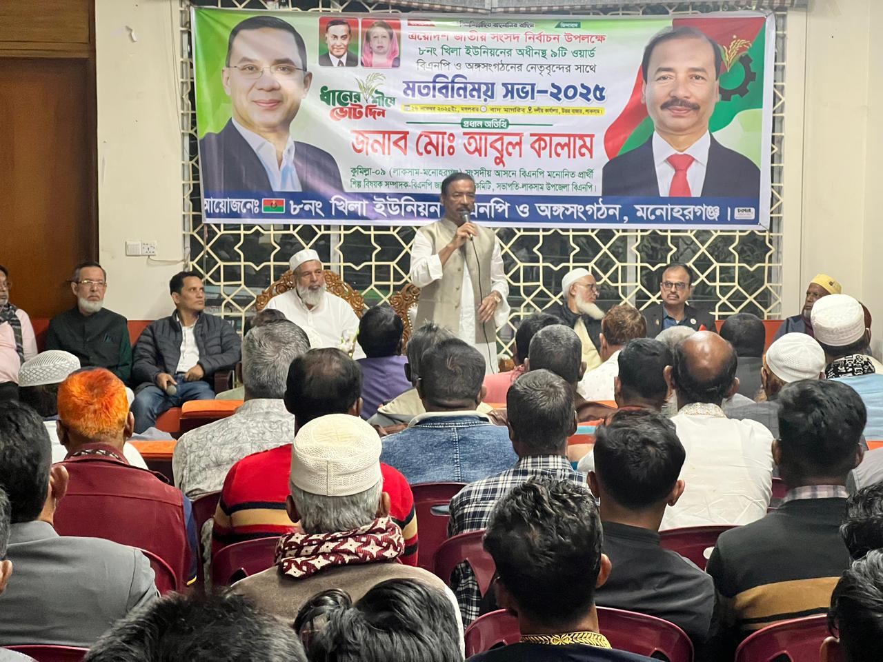 মানব কথা: ত্রয়োদশ জাতীয় সংসদ নির্বাচন উপলক্ষে মনোহরগঞ্জ উপজেলার ৮নং খিলা ইউনিয়নের ০৯টি ওয়ার্ডের বিএনপি ও অঙ্গসংগঠন নেতৃবৃন্দের সাথে এক মতবিনিময় সভা অনুষ্ঠিত হয়েছে।